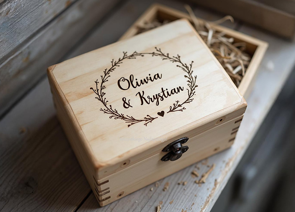 Grawerowanie na drewnie można wykonać na szerokiej gamie produktów, takich jak deski do krojenia, skrzynki na wino, ramki na zdjęcia, pamiątkowe tabliczki, pudełka, a także ozdoby i elementy wystroju wnętrz.