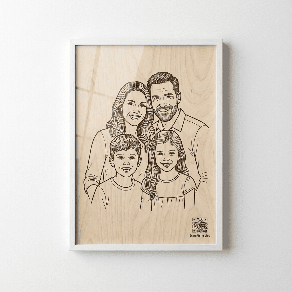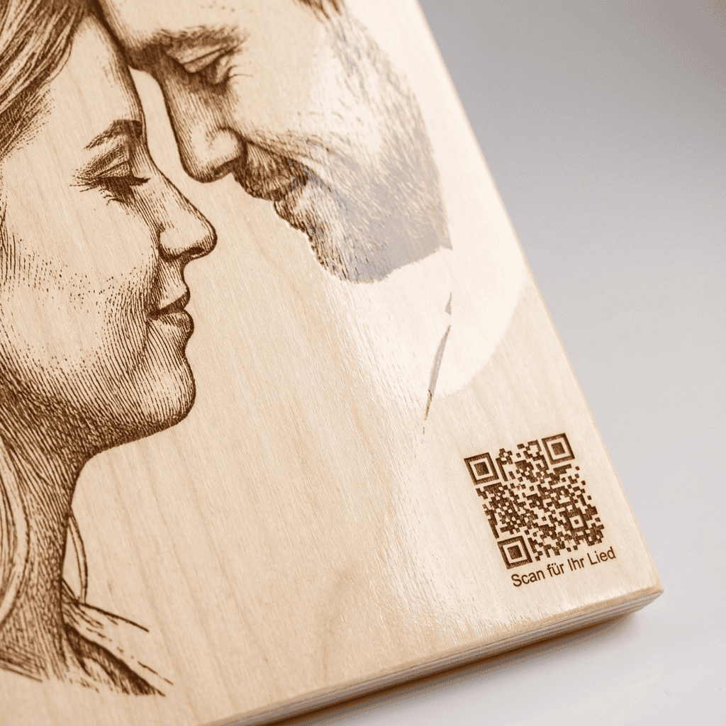 Es gibt Momente im Leben, die sind zu wertvoll, um in Vergessenheit zu geraten. Mit **Herzklang auf Holz** schaffen Sie eine **einzigartige Verbindung zwischen Bild und Musik** – ein lasergraviettes Porträt auf echtem Birkenholz im **Format A3**, kombiniert mit einem **individuell komponierten Lied**, das speziell für diesen Moment geschrieben wurde.