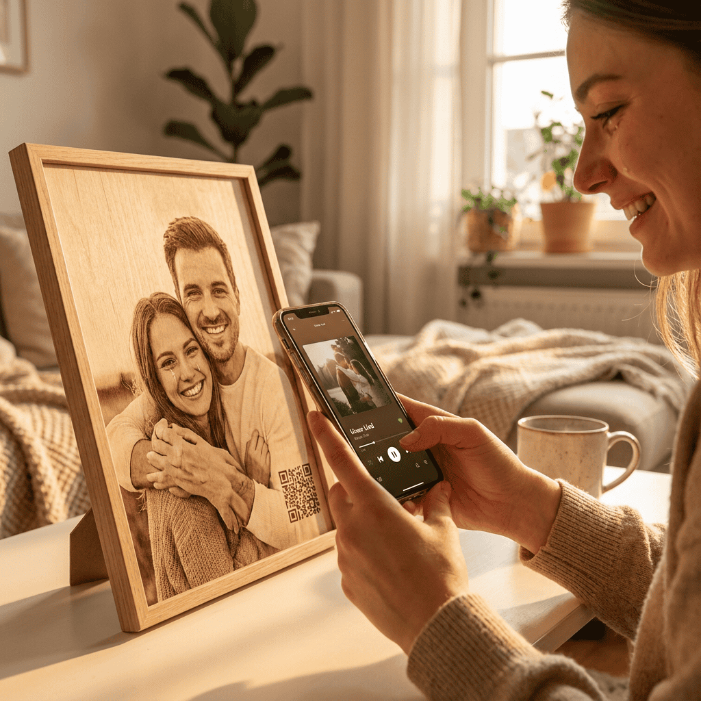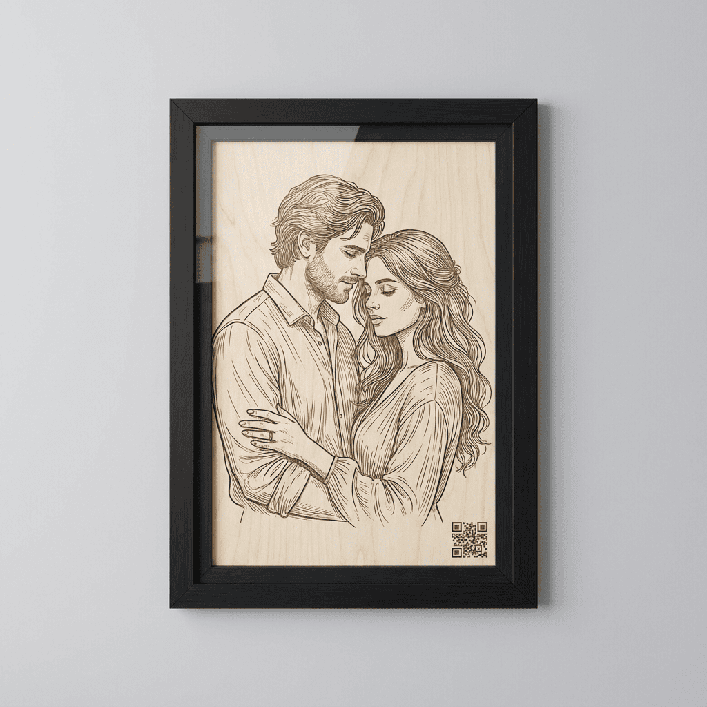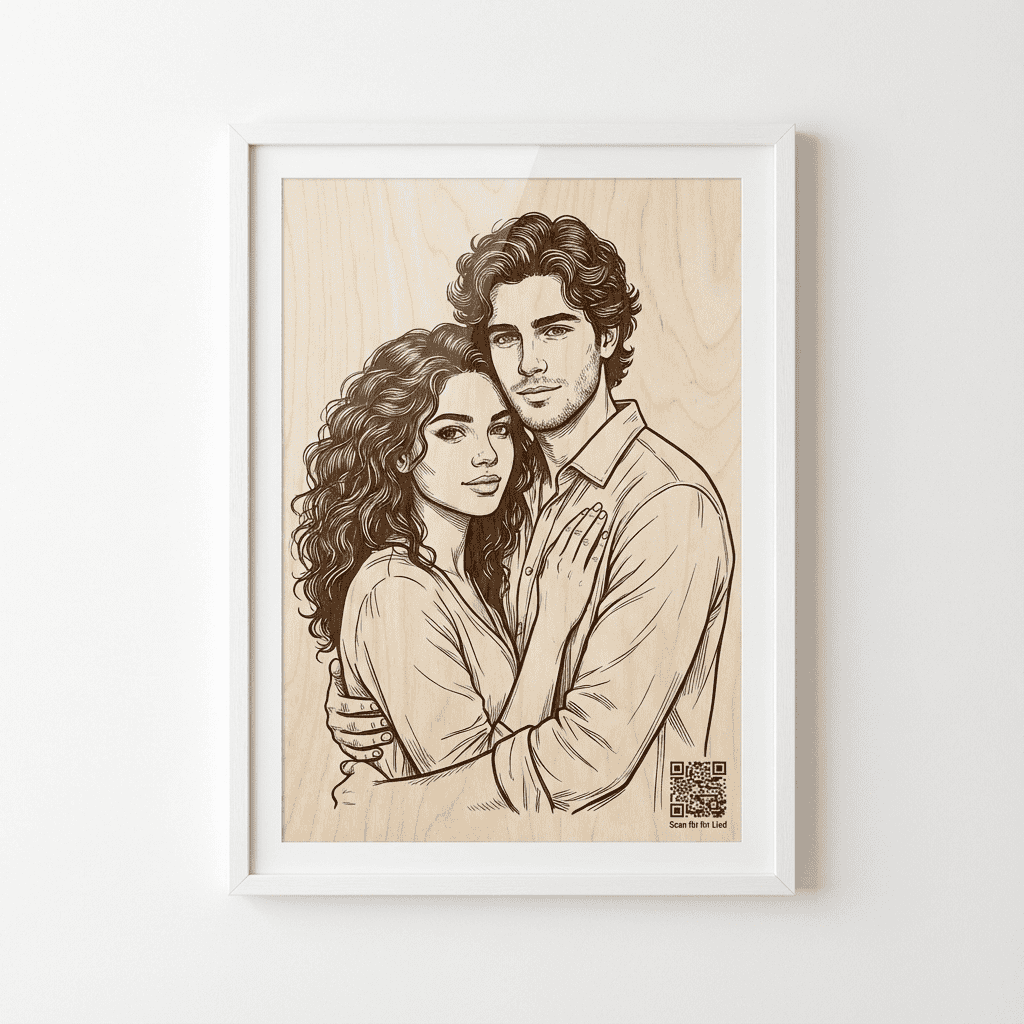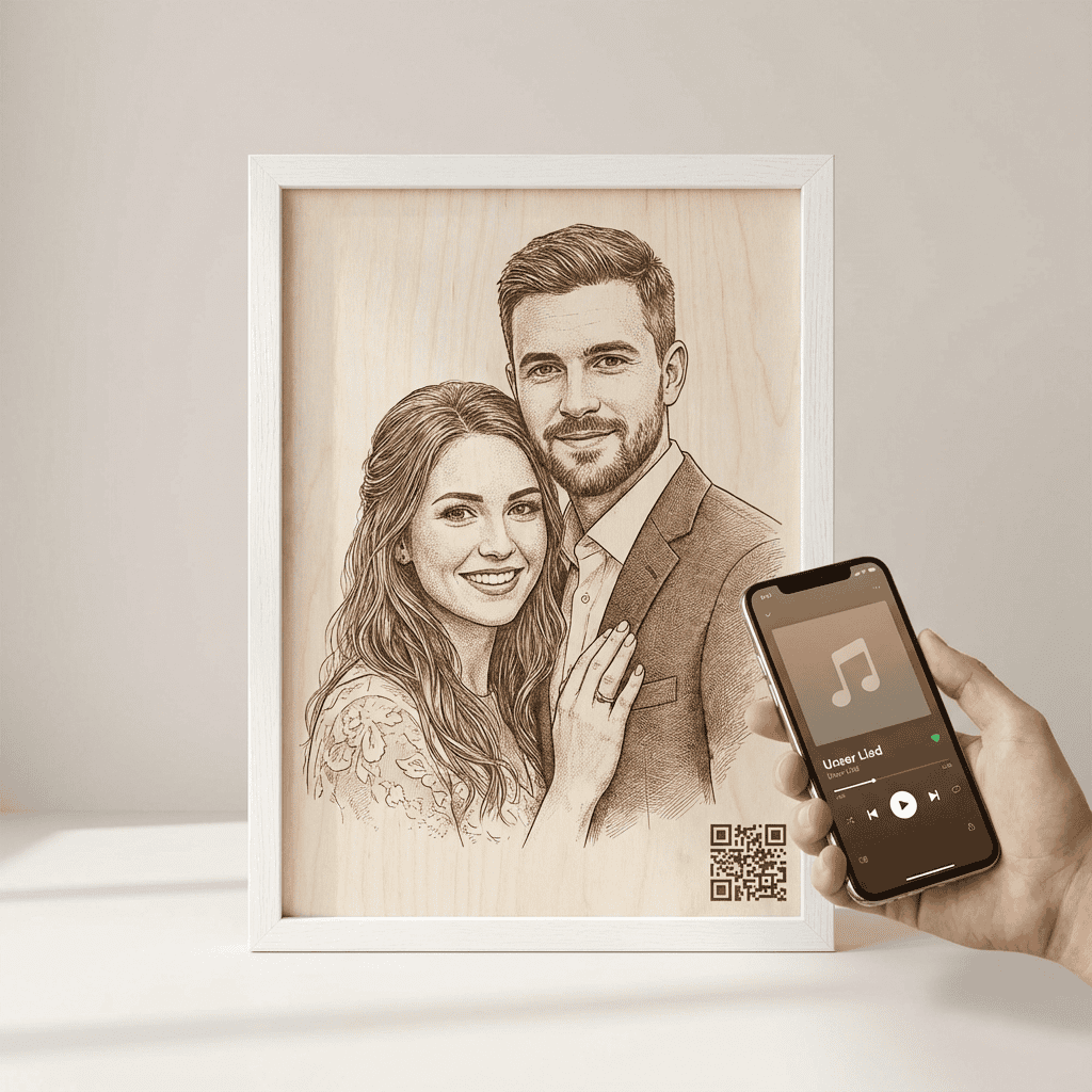 # 🎵 Herzklang auf Holz – Graviertes Porträt mit individuellem Lied (A3)