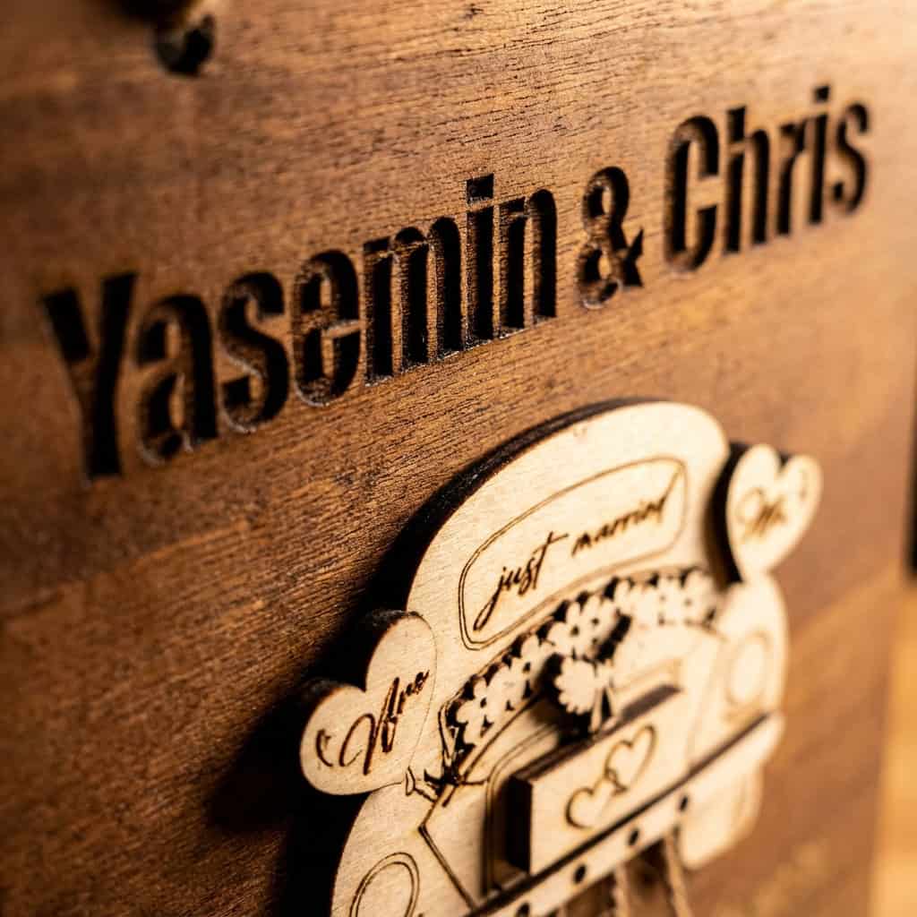 Ob von Familie, Freunden oder Trauzeugen – diese personalisierte Holztafel bleibt als bleibende Erinnerung an einen der schönsten Tage im Leben.