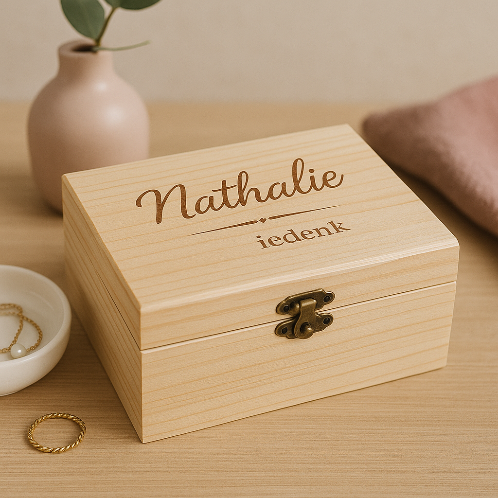 Stilvolle Holzbox mit Namensgravur – perfekt für Schmuck, Erinnerungen & Herzensdinge.